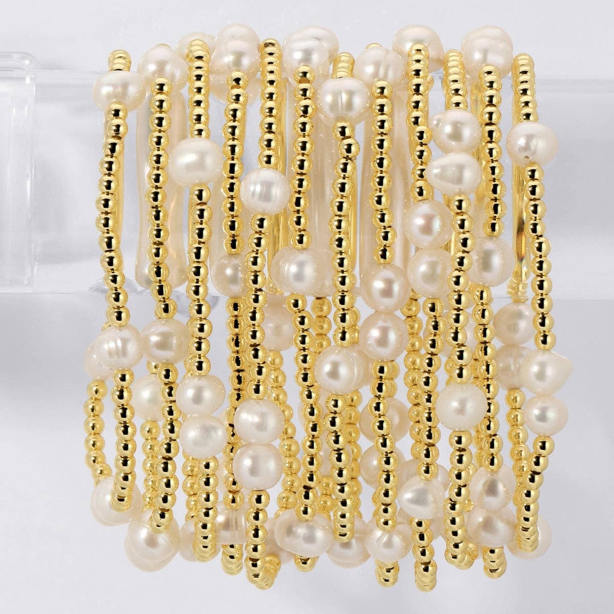 This beautiful bracelet features luminous large pearl accents, perfectly blending classic sophistication with a modern, stackable design. Designed for effortless layering, these bracelets offer a versatile, minimalist aesthetic that seamlessly enhances any outfit, transitioning beautifully from casual daytime wear to polished evening attire.